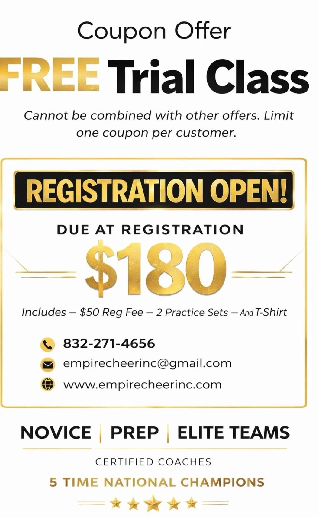● Empire Cheer aims to provide an elite All-Star cheer experience.